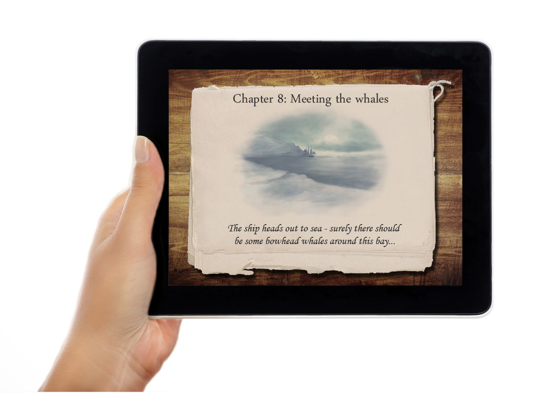 The Expedition is an interactive companion to the children documentary “Meet a Whale” which is about the bowhead whale of Greenland. The Expedition is a combination of game and e-book, with sound, video and illustrations and “roleplay” like choices where you decide where the expedition should go.